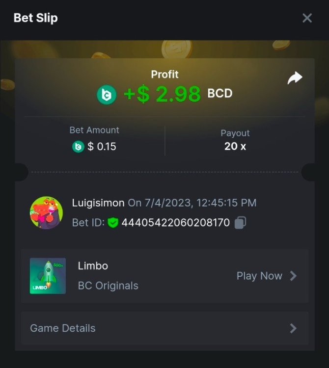 $1,500 Exclusive Weekend Hash Dice Prestige Challenge #76Luigisimon replied to BC_Jack's topic in Past Challenges | 20 | 33 | 45 | 55 | 66 | 75 | 88 | 222 | 305 | 444 | 555 | 666 | 888 | 1205 | 2500 | 3000 | https://bc.game/#/sd/11568IHY9EAPLF
