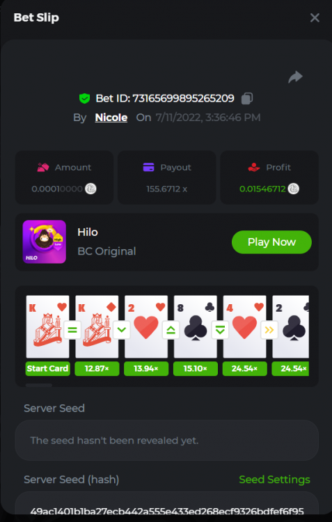 Katulad ng nakasaad sa profile ko, walang duda na HiLo pa din ang paborito ko mula noon hanggang ngayon. Ito pa din ang nananatiling laro na unang una kong binubuksan sa tuwing maglolog-in ako. Ang tanong, "Bakit nga kaya?" Simple lang, ang hinahanap ko bilang isang manlalaro ay ang isang uri ng laro na ang posibilidad sa makukuha mong multiplier ay endless, infinite kung baga, unlimited ang sabi ng iba. Hindi ako gaanong sigurado kung meron man maihahalintulad sa HiLo. Maaaring Coinflip, pwede. Pero, HiLo pa din ang hinahanap hanap ko saan man ako maglaro. Mapa bc.game o hindi. Isa na lang ang hinihintay ko, na sana dumating ang time na katulad sa kabilang istasyon, mayroon isang henyo na lilikha ng HiLo bot para sa bc.game. Posible pero hanggang sa ngayon wala akong makita. Siguro hindi pinapaboran ng casino, who knows? That's just for me. Salamat! Magandang araw sa lahat!