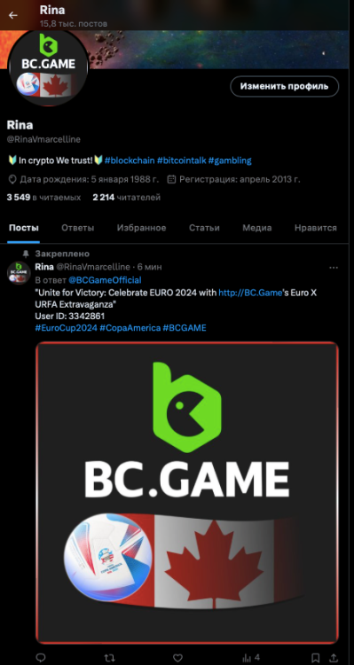 1. https://bc.game/#/user/profile/3342861 User ID: 3342861 https://x.com/RinaVmarcelline @RinaVmarcelline