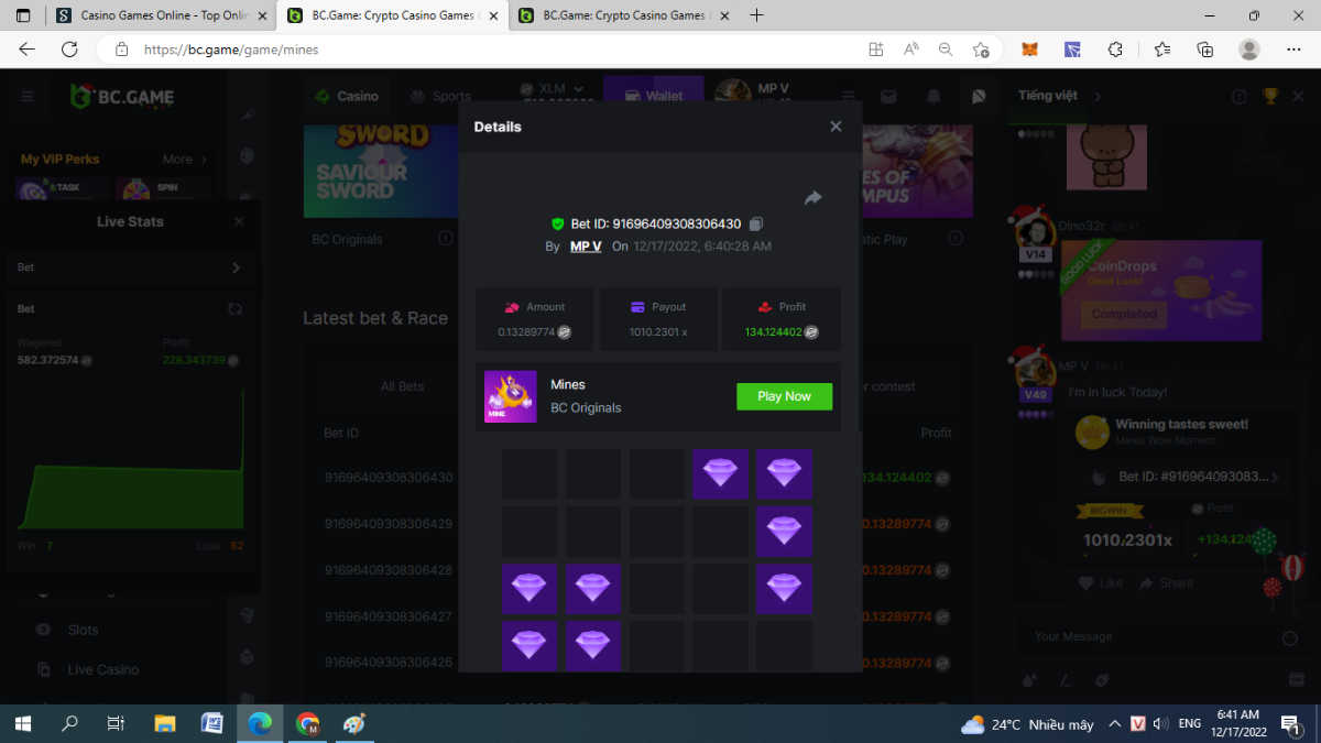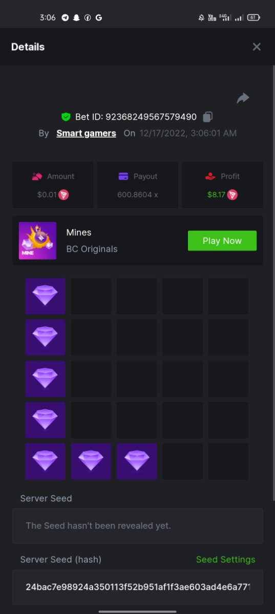can u give sample mines @Black Tiger about how many bomb and Diamond on every single 1bomb until 24 bomb ? thx